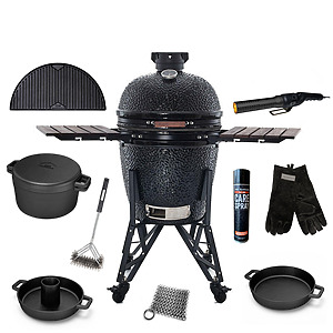 Wist je dat je een kamado ook in de winter heel goed kunt gebruiken? En je hoeft er echt niet heel de tijd bij te staan. Maak bijvoorbeeld een heerlijke stoofpot. Met deze set kan het! Snel aansteken met de One Minute Lighter, het vlees aanbraden op de gietijzeren plancha en dan in de Dutch Oven uren laten pruttelen. Je gietijzeren accessoires daarna schoonmaken? Dat doe je natuurlijk met het scrubmatje en de Care Spray.