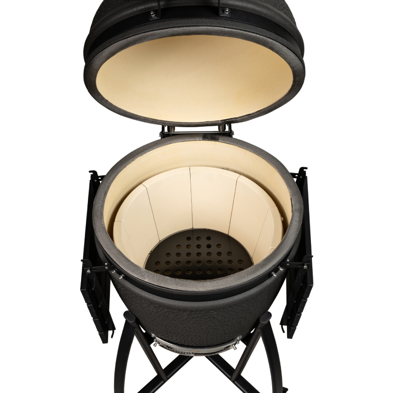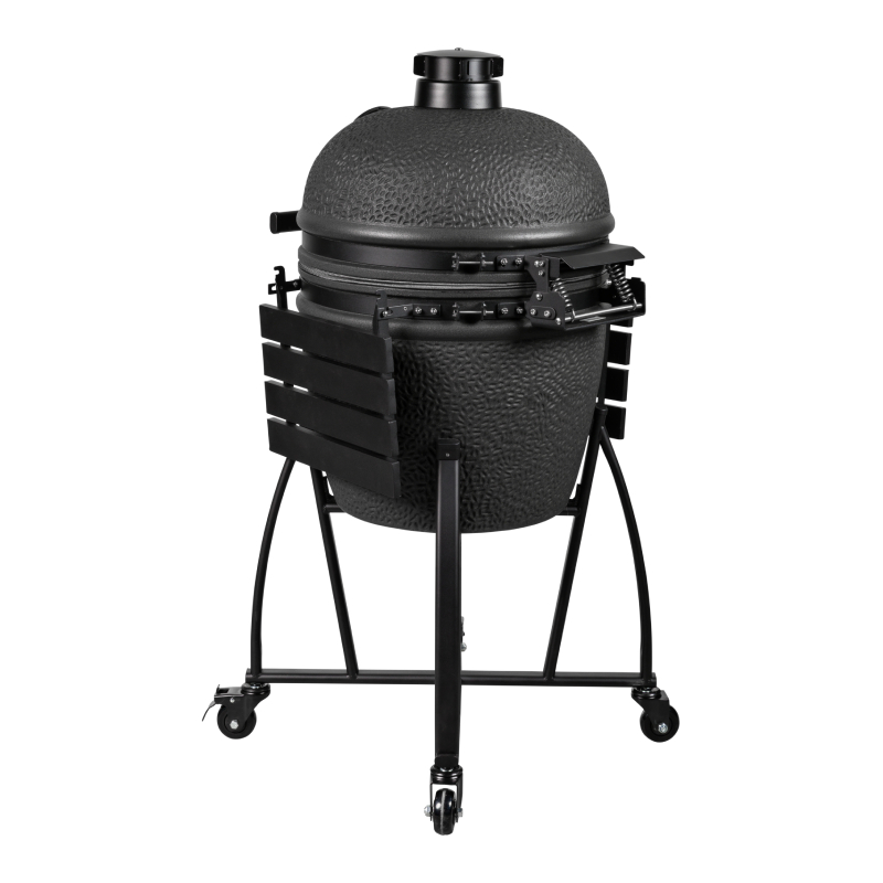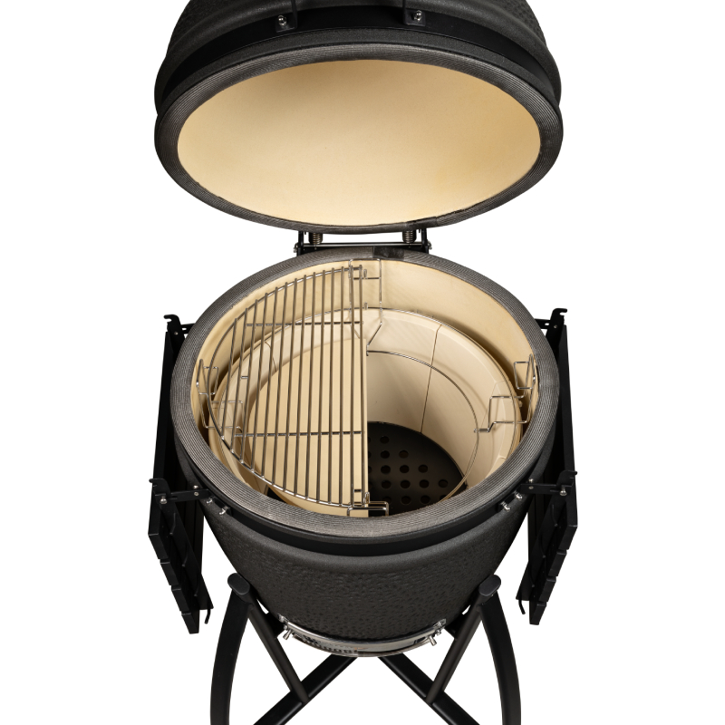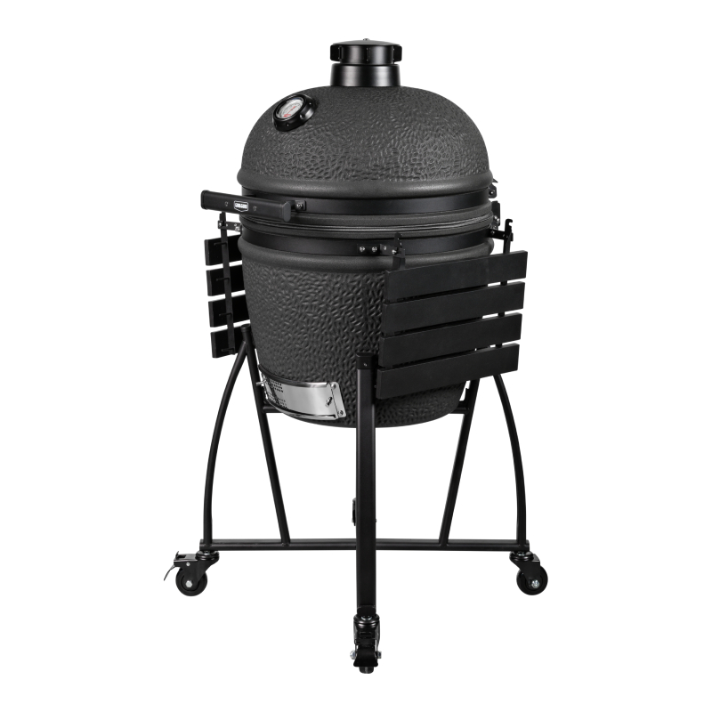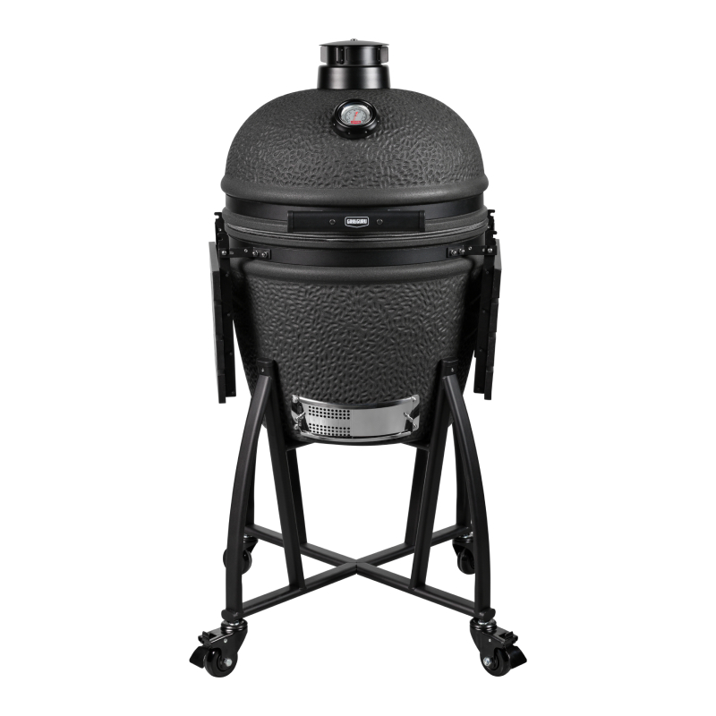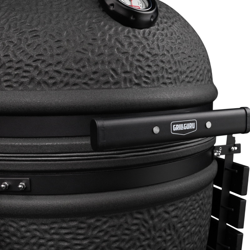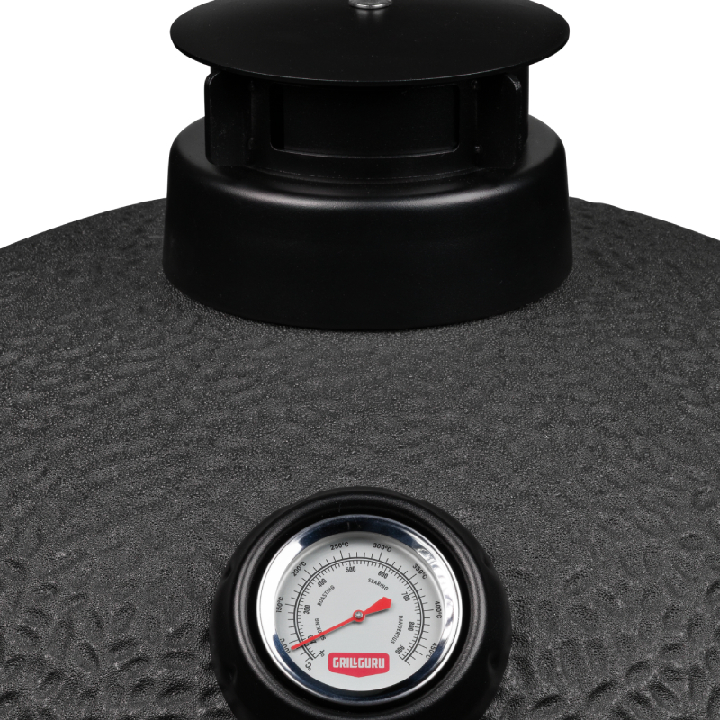 De mat zwarte Grill Guru Prime Matt Black Large is een kamado uit het sub segment met een hele goede prijs – kwaliteit verhouding. Om tot een lagere prijs te komen is het keramiek wat dunner en van een andere kwaliteit dan de A-merken. Tevens is er bespaart op staal en de algehele afwerking om tot de scherpere prijs te komen. Qua functionaliteit doet deze betaalbaardere kamado niet onder voor andere merken en je kunt er heerlijk op grillen, slow cooken, pizza bakken of stoven.