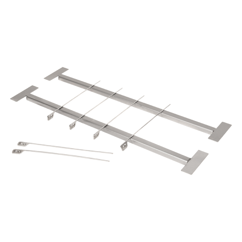 De stevige roestvrijstalen staven passen perfect over je Kasai en vormen een stabiel platform voor de meegeleverde spiesen. Het ontwerp voorkomt dat er voedsel door de roosters valt, zorgt voor gelijkmatig garen en zorgt ervoor dat er eenvoudig delicate spiesjes met vlees, zeevruchten of groeten bereid kunnen worden.