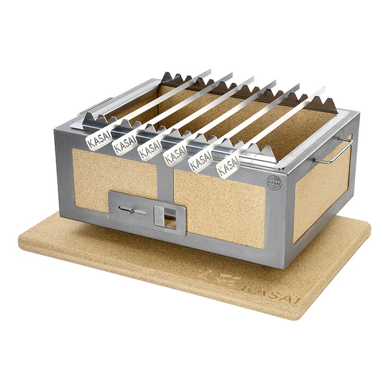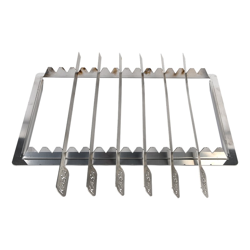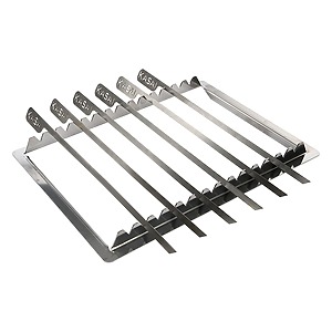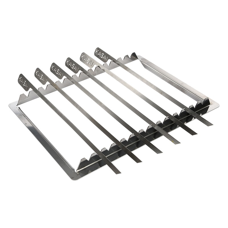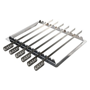 Dit Kasai Medium Wide Spiesenrek is speciaal ontwikkeld voor de Kasai Medium Wide konro grill en bestaat uit een RVS frame met 6 spiesen voorzien van RVS handgrepen. Ideaal voor het grillen van yakitori, spiesen, souvlaki, stevige vis of groenten.