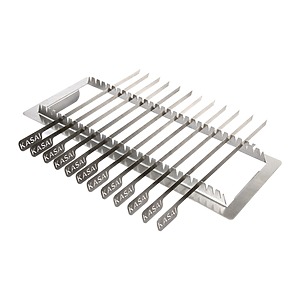 Dit Kasai spiesenrek XL is speciaal ontwikkeld voor de Kasai Konro Grill XL en wordt geleverd met 12 spiesen met RVS handgrepen. Ideaal voor het grillen van, bijvoorbeeld, gekruid lamsvlees, souvlaki, stevige vis of groenten.