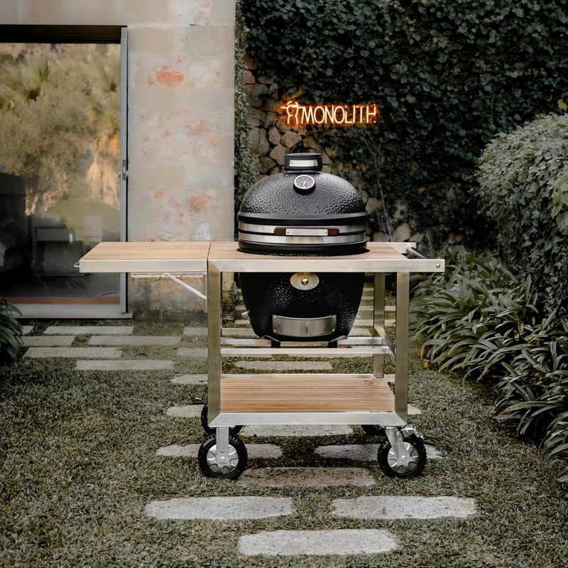 Ga jij voor de compleet nieuw ontwikkelde Monolith AVANTGARDE.55 (Classic) in een verrijdbare Buggy met klaptafel? Deze topkamado is uitgevoerd in chique matgrijs met extra brede RVS banden en voorzien van het handige SGS Multi Level System met geïntegreerde, halve druippannen, 2 indirect stenen en 2 halve RVS roosters. Wat deze kamado helemaal te gek maakt is het handvat met ingebouwde LED verlichting en de speciale staal + fiberglas afdichting. Hierdoor kun je probleemloos werken met de (optionele) unieke Fire Plate. Uiteraard levenslange garantie en geschikt voor 6 – 8 personen