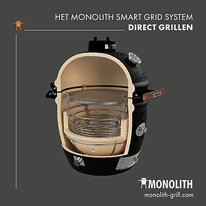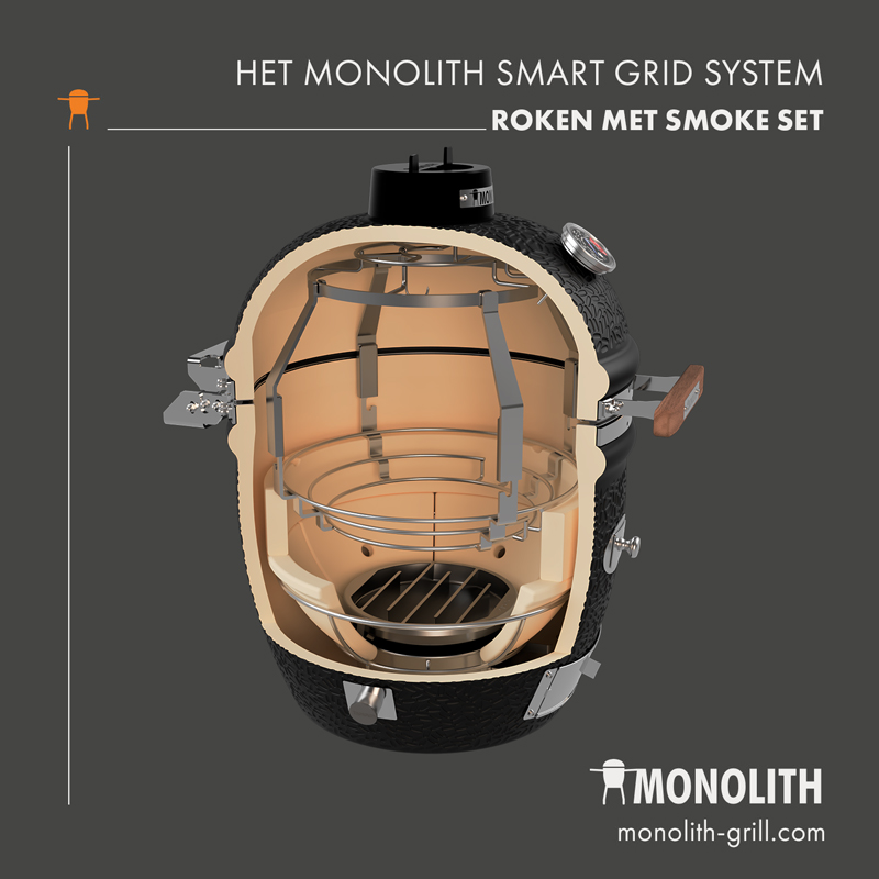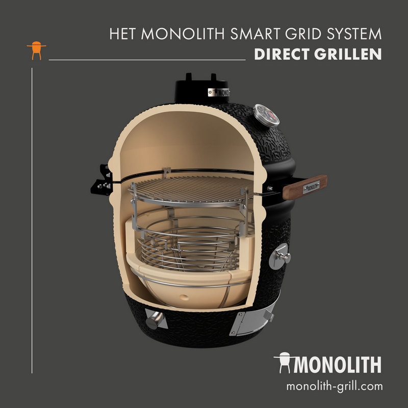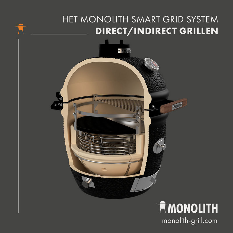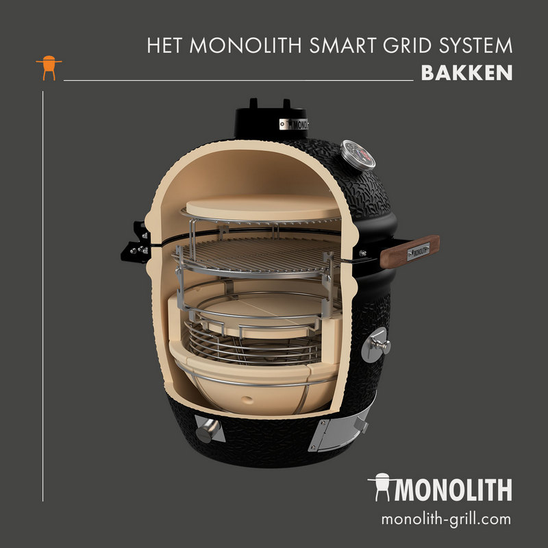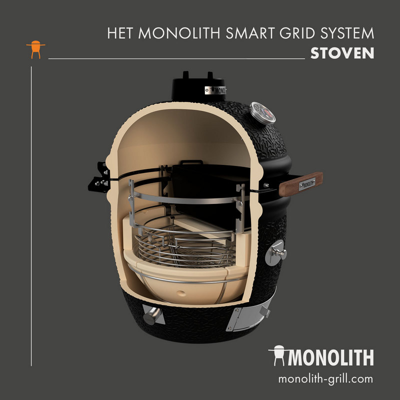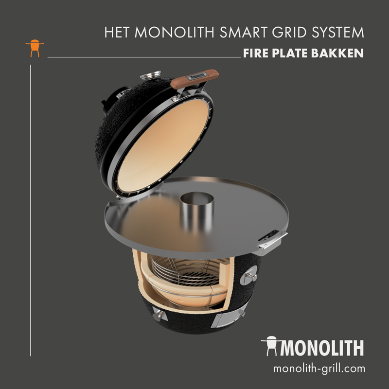 - Monolith afdichting: onverwoestbaar fiberglas boven en een stalen ring onder. Met deze afdichting kun je eenvoudig en zonder je vilt te verbranden de (te gekke) Fire Plate gebruiken!