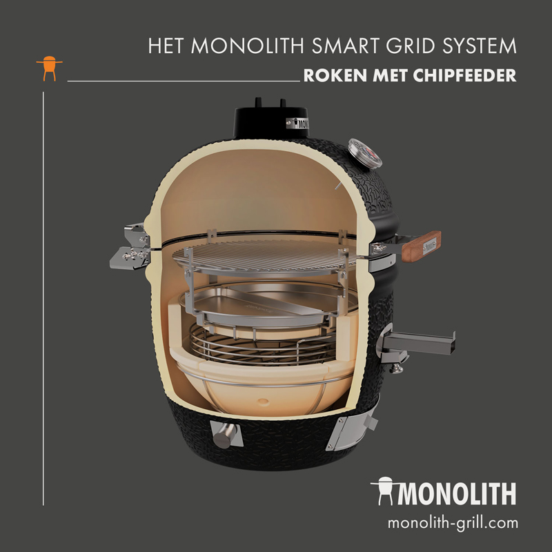 - ROOKHOUT SYSTEEM, eenvoudig rookhout toe te voegen met de chip feeder.