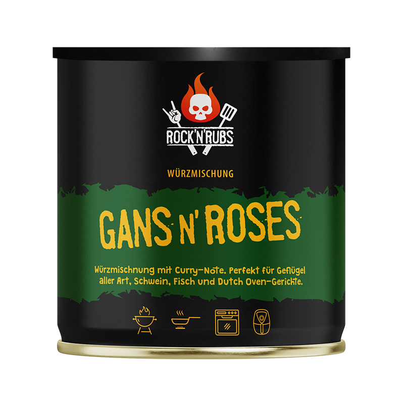 Perfect voor alle soorten gevogelte, varkensvlees, vis en gerechten in een Dutch oven. Gans ‘N Roses is perfect voor gans, eend of kalkoen, kip, geroosterd varkensvlees, gebakken ham, gehaktgerechten en witvis. Met rozenblaadjes voor een extra kick.